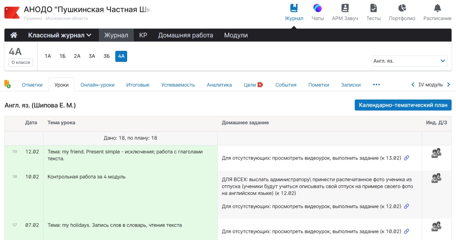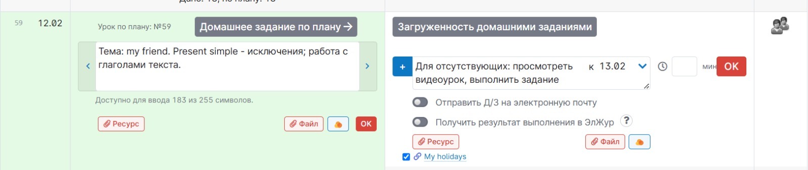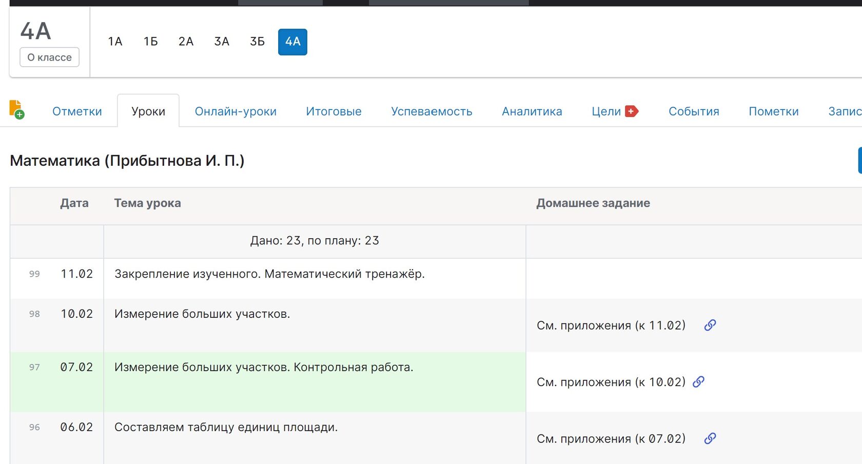 Итак, смотрим Математика. Добавляя ДЗ 10 февраля - оно появляется в следующем уроке Математики, то есть 11го февраля.